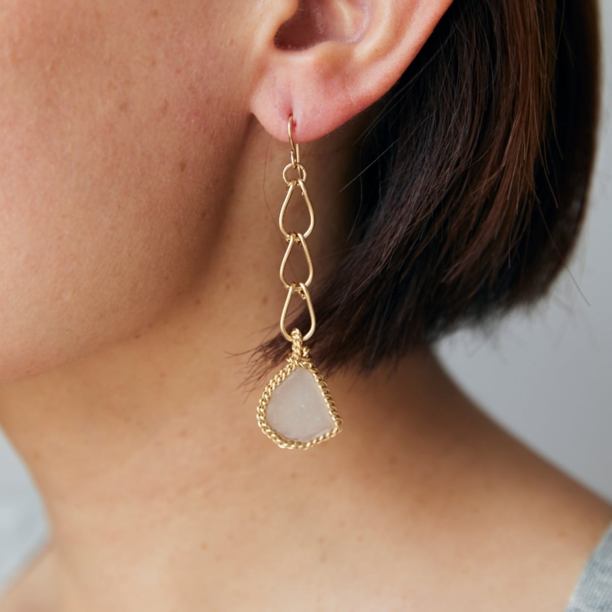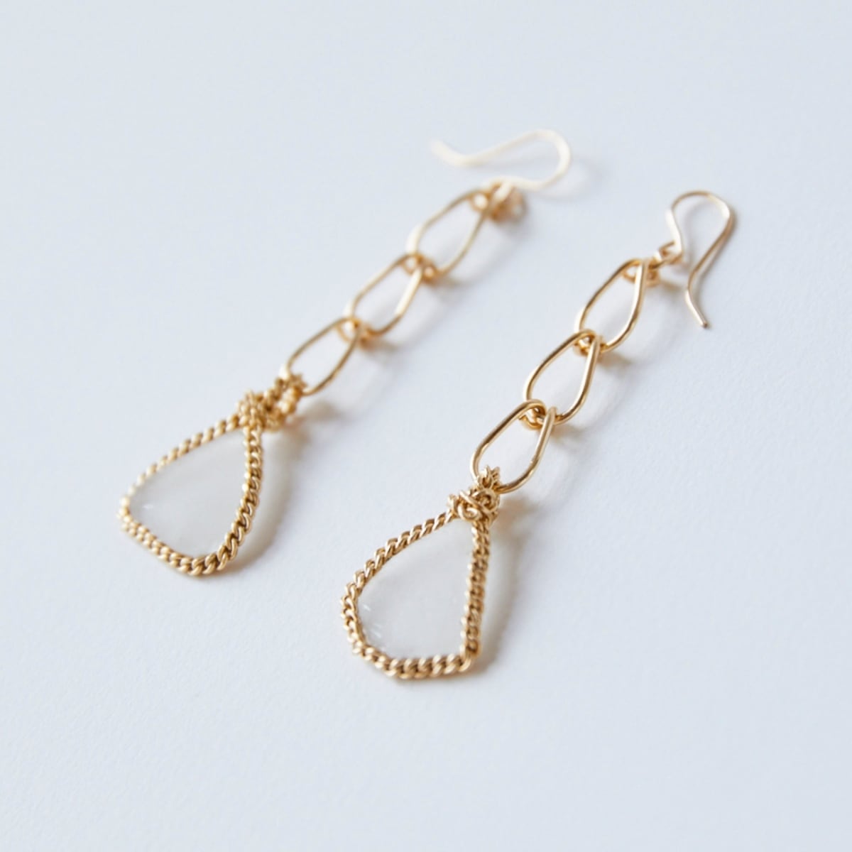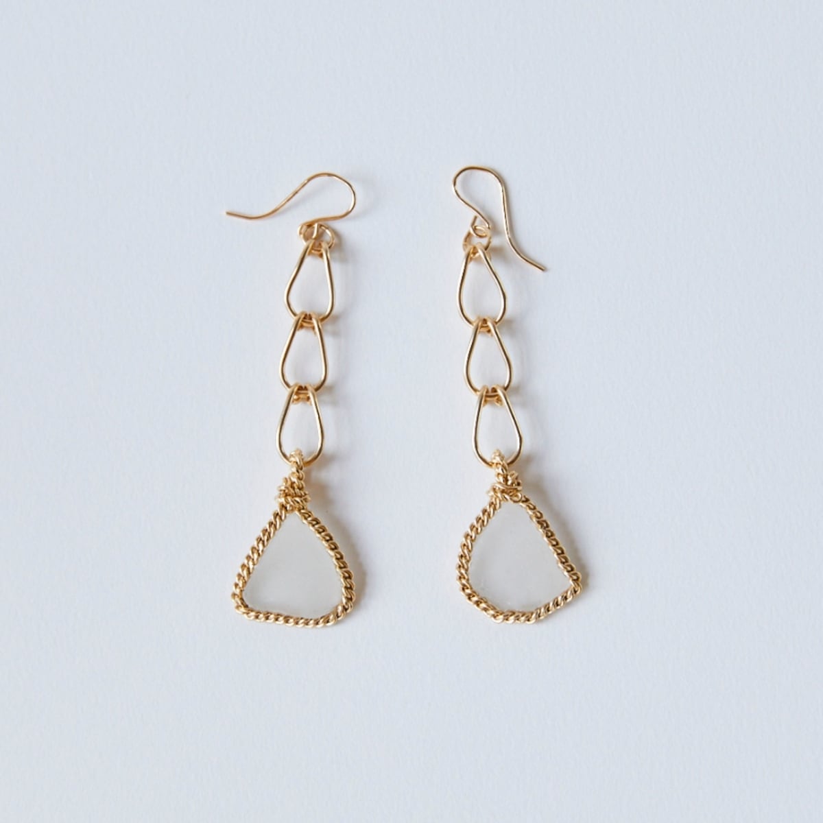 自然に磨かれたホワイトシーグラスを、14kgfで仕立てたハンドメイドピアスです。
