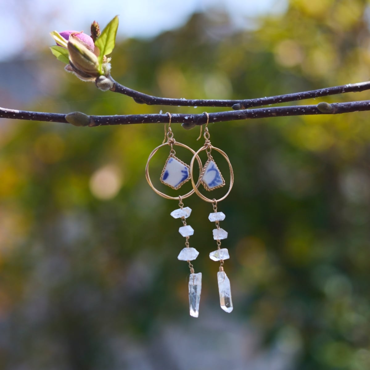 厳選した天然石を丁寧に組み合わせ、繊細でありながら印象的なピアスに仕立てました。