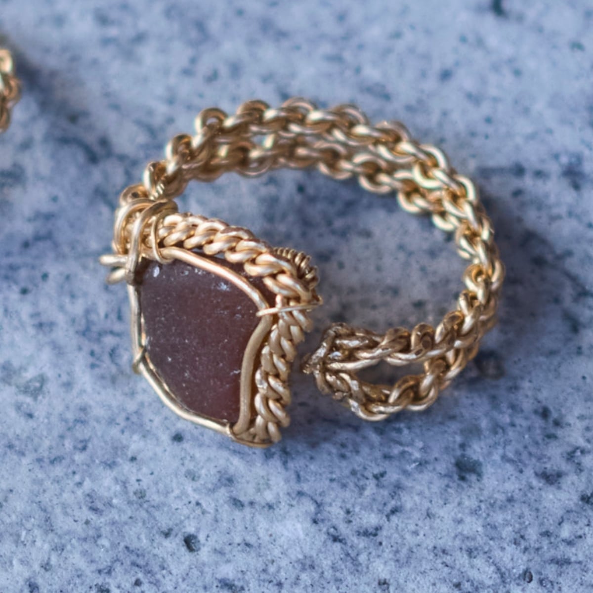 ブラウンシーグラスオープンリング14KGF(14号前後)